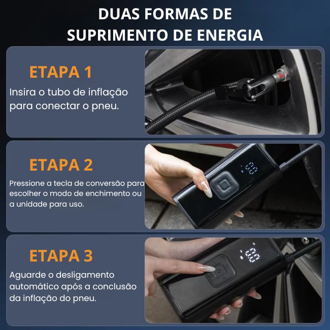 Imagine acordar e descobrir que o seu veículo amanheceu com o pneu furado, e você tem compromissos importantes pela manhã. Com o AirMaster Calibrador, você pode resolver essa situação de emergência rapidamente, sem perder tempo esperando por socorro ou correndo o risco de chegar atrasado. Em apenas alguns minutos, você pode encher o pneu e seguir seu caminho com segurança e tranquilidade. Não deixe que pequenos imprevistos como esse afetem seu dia! 🚗💨