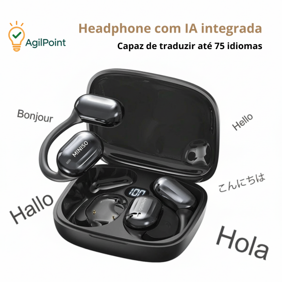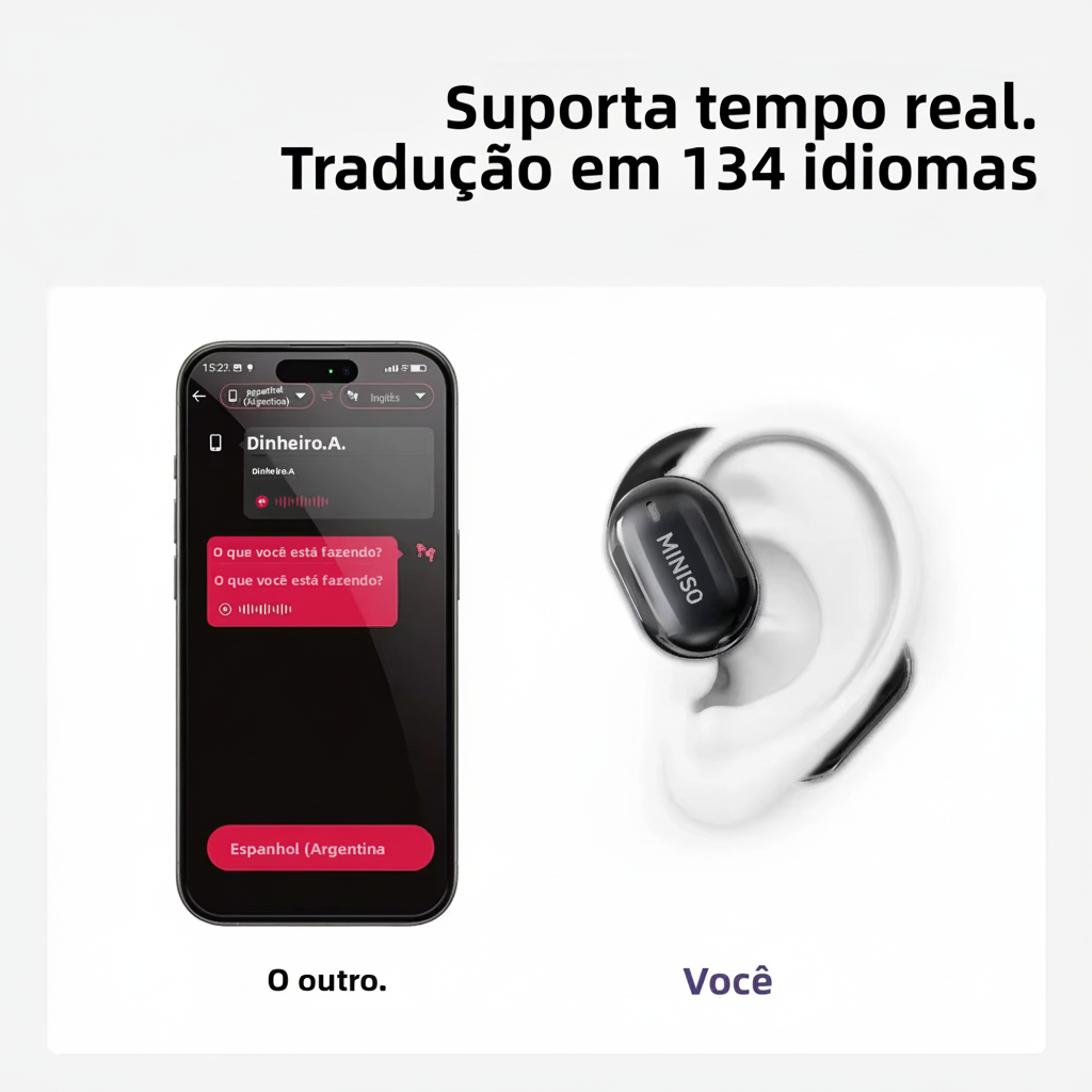 Fone de Ouvido Bluetooth com Tradutor Instantâneo por IA - Gancho OWS – MINISO