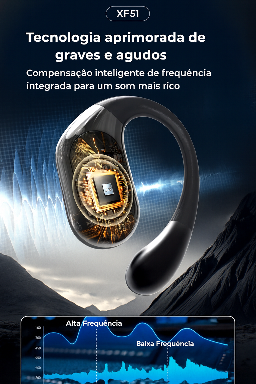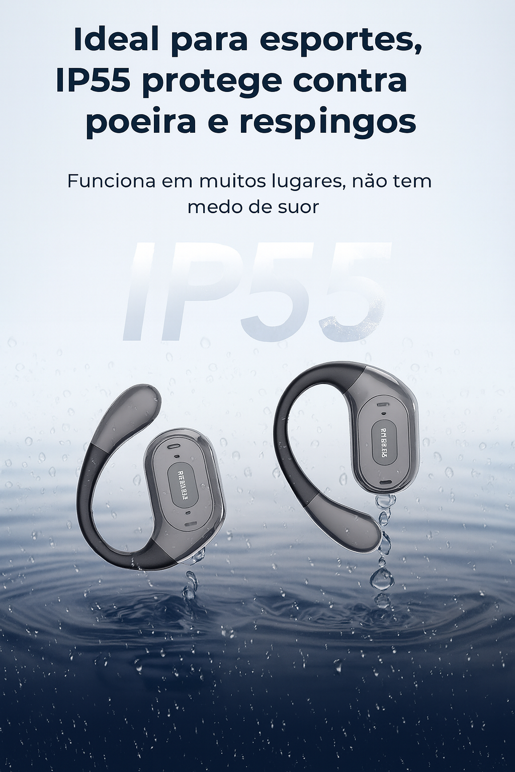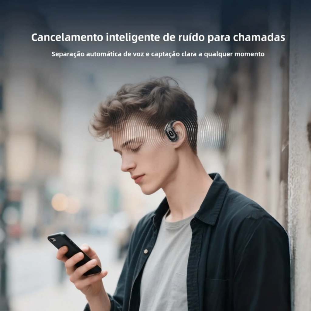 - Tipo: Fone OWS (não entra no canal do ouvido).